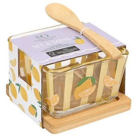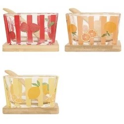 Verrine a tapas fruity verre avec cuillere et plateau bambou